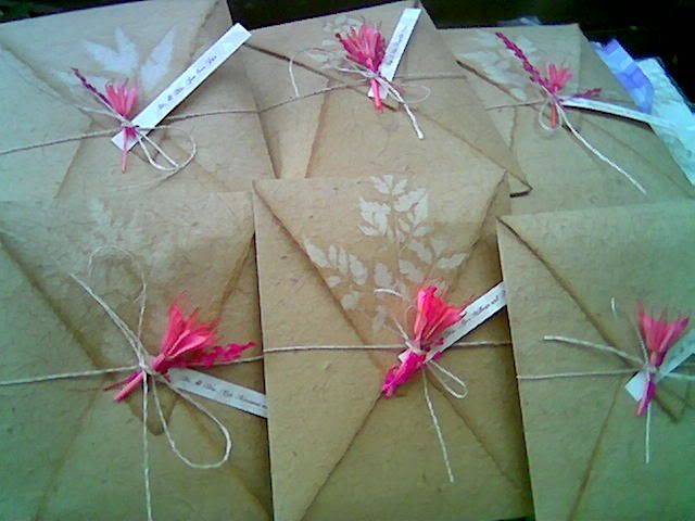 Anyway, while at Ezra's place, Adrian finished the rest of the cutting while me and Ezra did the assembly of the invites. I collated what inserts to be included in each invitation - depending on the guests' role in the wedding, (making sure the number of reserve seats in the dinner reception card is in sync with guest list head count) while Ezra compiled them and knot the invites with potpourri flowers. The finish product is simply marvelous.