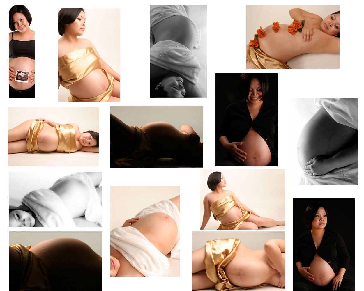 Friday came and I had my hair blow dried... which I'm glad I did ( it was worth it!) and then head to Podium for the shoot. I finally met Eileen after being my client for 2 1/2 years. I learned from her that when my colleague Rachel told her that I was working from home, she was actually hoping that I was pregnant and 8 months on the way ... (is she a psychic or what?) She even guessed that we're having a boy (when we were talking on the phone yesterday). Anyway, before hand I told her that I don't do my own make-up, so she was kind enough to do some magic on my face. I met 2 of her photographers, Jill and Joie (sorry if I spelled it wrongly) who worked with her on the shoot. At first I was stiff and they keep on telling me to relax. I felt like I was on the TV show, "The America's Next Top Model" and Tyra Banks is surely not going to be happy about this. But eventually I became at home with my 3 beautiful photographers. They showed me my photos in their cameras to encourage me that I look great with my tummy exposed. And the more they showed me the eager I become ... and the shots taken gets better and better and I too am excited to do more... more shots and less clothing ... hahaha.. But it was made in good taste... I joked at my husband that my photos can be an entry to FHM for Mommy of the Month. Yup as I have said.. I posed nude but of course covered my private parts.